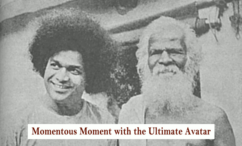На обратном пути Саи остановил автобус в том месте, где на тоненьком железном стерженьке висела дощечка с едва различимой надписью: "Васиштха гуха (Пещера Васиштхи)". Он быстро спустился по довольно крутому склону к берегу реки, так, будто частенько бывал там и раньше, и словно бы уговорился о встрече с тем, кто занимал открывшуюся всем пещеру. Река вблизи пещеры делает крутой поворот, а неподалёку несёт своё скромное подношение Ганге маленький ручеёк, так что картина вдвойне привлекательна. Пещера, носящая святое имя "Васиштха", освящена аскетическими подвигами, которые вершили в этом уединении многие отшельники и аскеты прежних дней. Свами Пурушотамананда – ученик Свами Брахмананды из ордена Рамакришны, посвящённый в санньясу Махапурушиджей, ещё одним непосредственным учеником Рамакришны, – обитающий в этой пещере с тридцати лет, приветствовал Саи Бабу так, словно давно поджидал Его! Ему уже за семьдесят и большую часть жизни он провёл в самой суровой аскезе и изучении Писаний. Лицо его сияет истинной духовной радостью, и малейшее упоминание о Славе Божьей повергает его в самадхи. Когда Свами было 27 лет, Брахмананда предсказал ему по руке, что он удалится в пещеру и долгие годы будет заниматься медитацией!
