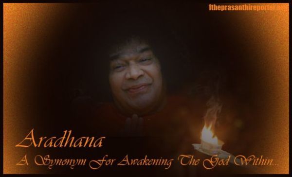 Пусть наша Арадхана поистине будет синонимом божественности…, священным гимном, священным размышлением о Нём, Кому мы пытаемся поклоняться…, стремясь к пробуждению Бога внутри…