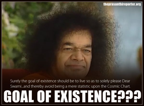 Надпись на фото: Конечно, целью существования должна быть такая жизнь, которая порадует Дорогого Свами,… и, таким образом, следует избегать того, чтобы быть просто статическим объектом на Космической Карте. Цель существования???