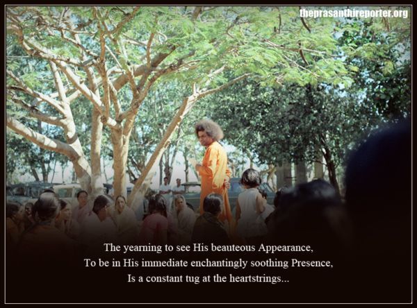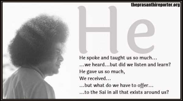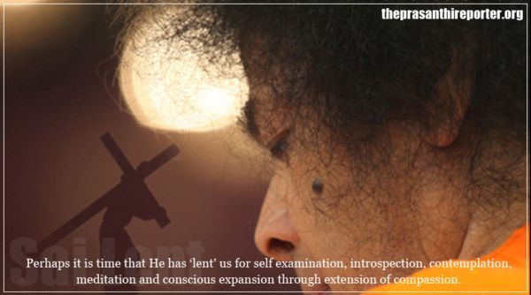 Это, конечно же, время Великого Поста, посвящённого Саи, время безмолвной практики Его поучений, неуклонного следования Его Примеру, время позволить нашим мгновениям, нашему дыханию… передавать Его Доброту, Его Доброжелательность, Его Великодушие…, Его Терпение…, мягкое чувство отзывчивости, непротиворечивости, дружелюбия и единства…, нежное выражение заботливого сочувствия, сострадания и дружеских чувств ко всем существам…, поскольку Он как Хридаяваси является основой всех наделённых чувствами существ…, поскольку каждое сердце является храмом, в котором Он пребывает вечно.