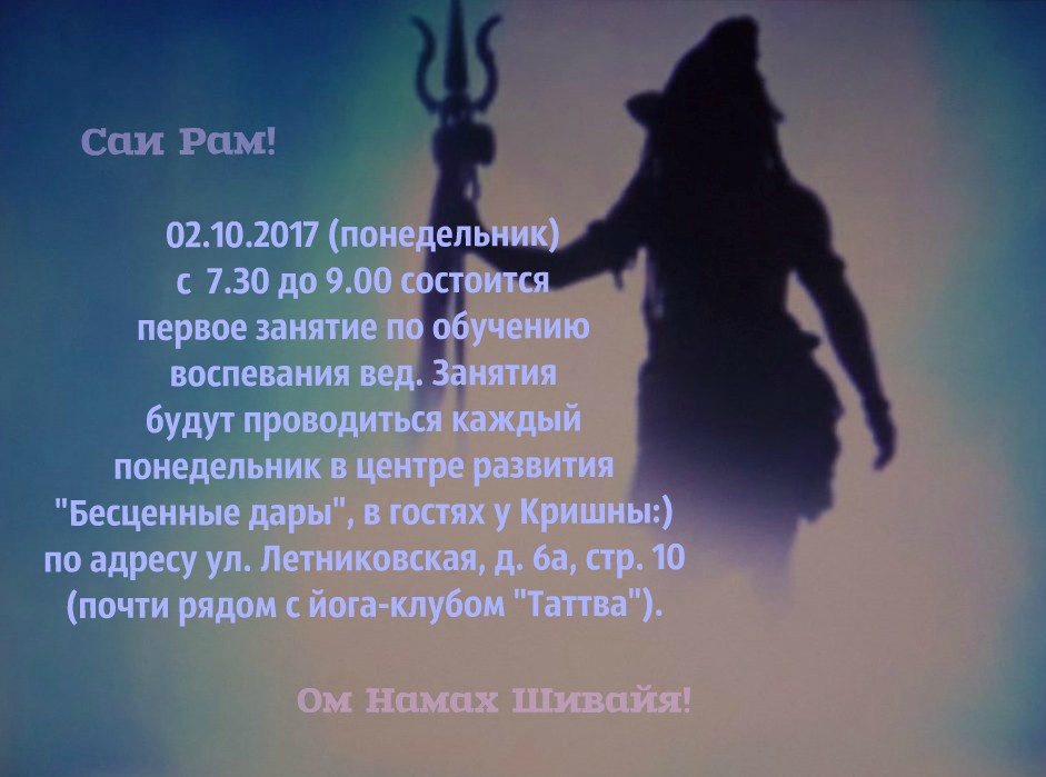 (гимн звучит в ашраме ежедневно во время утренних и вечерних программ)