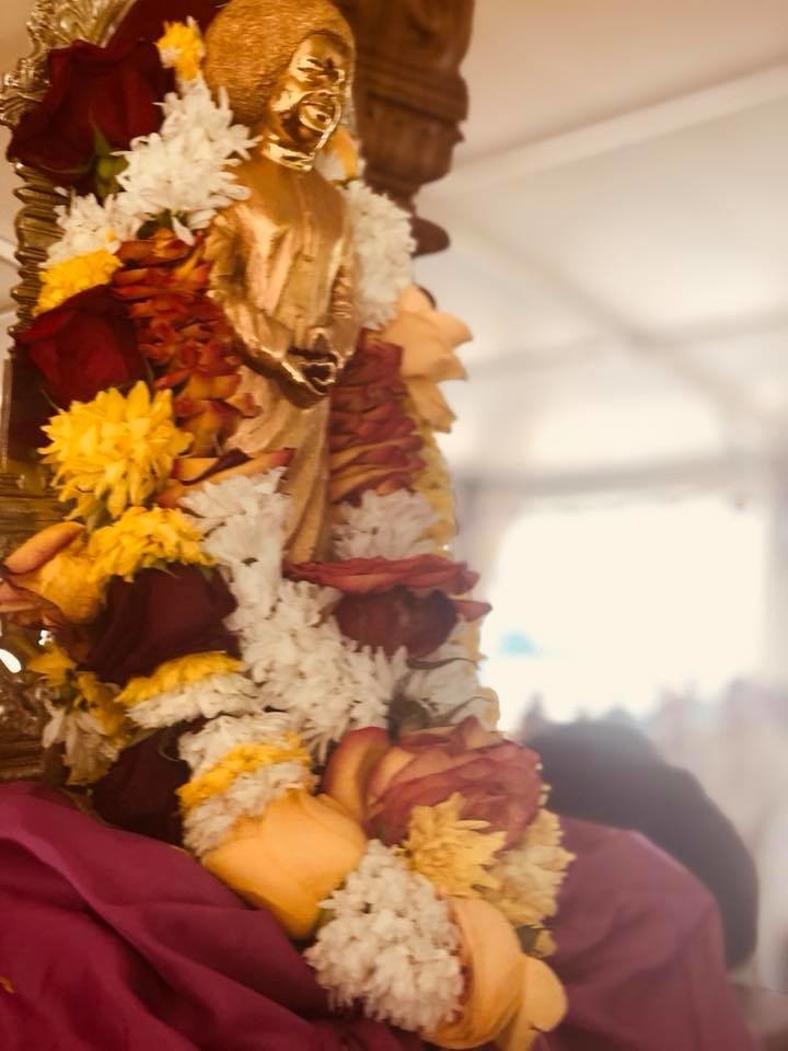Идёт Чанди хома, очень мощная пуджа, устраняющая зло, болезни, магические воздействия. Статуэтку Свами принесли прямо на хому, буквально в это же время в Его руках материализовался кумкум, символ Шакти.